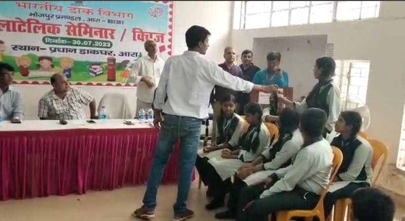 आरा : भारतीय डाक विभाग भोजपुर प्रमंडल आरा के तत्वावधान में रविवार को फिलाटेलिक सेमिनार और क्विज प्रतियोगिता का आयोजन किया गया। जिसमें आरा शहर के आधा दर्जन स्कूल के छात्र-छात्राओं ने हिस्सा लिया।