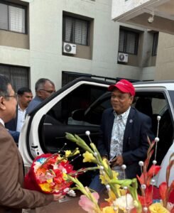 राज्य के आदिवासी कल्याण आयुक्त श्री अजय नाथ झा ने माननीय मंत्री श्री चमरा लिंडा का अभिवादन किया।