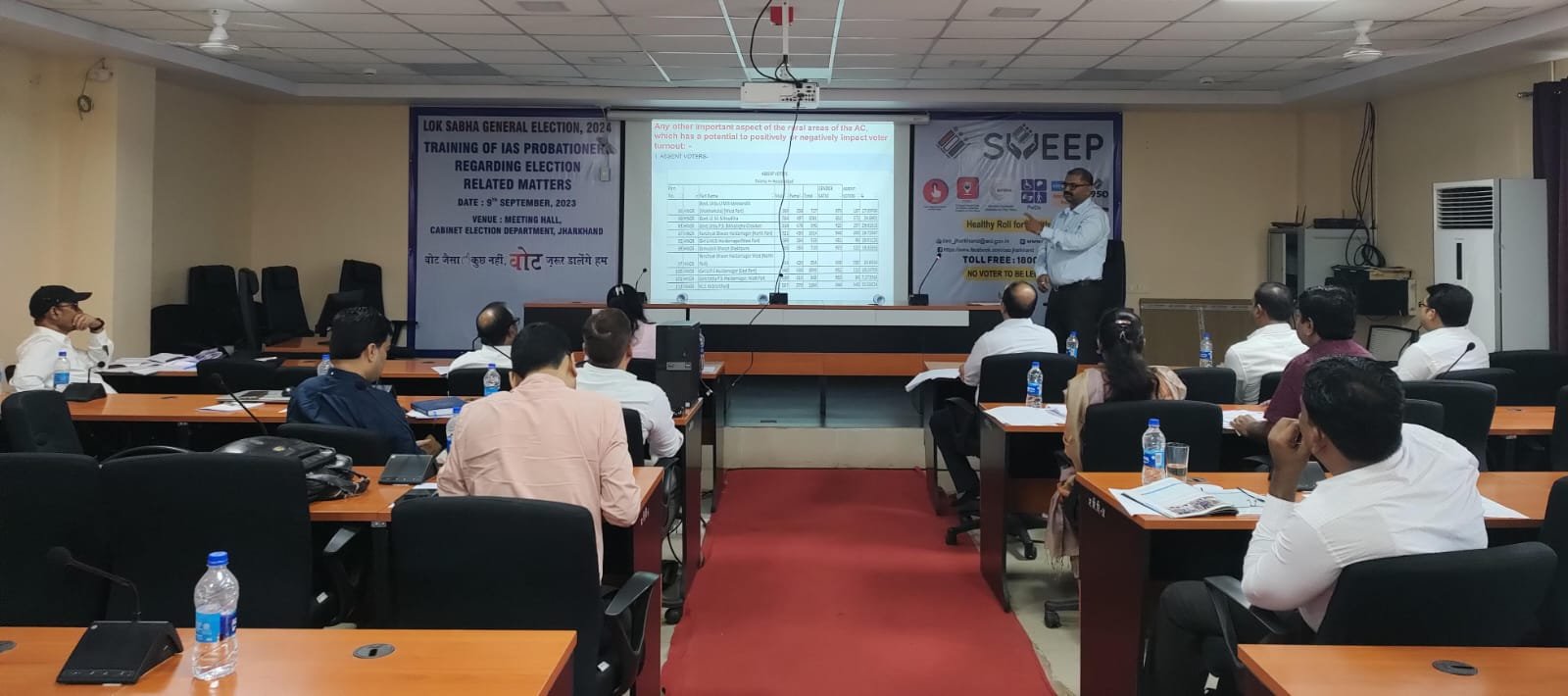 समीक्षा बैठक में 41- झरिया से एडीएम लॉ एंड आर्डर धनबाद श्री के.के. गुप्ता, 40- धनबाद से एसडीओ धनबाद श्री प्रेम कुमार तिवारी , 64- हटिया से एडीएम लॉ एंड आर्डर रांची श्री राजेश्वर नाथ आलोक, 79-हुसैनाबाद से एसडीओ हुसैनाबाद श्री कमलेश्वर नारायण, 43- बाघमारा से निदेशक डीआरडीए धनबाद श्री मुमताज़ अली अहमद, 27-चतरा से एसडीओ चतरा श्री मुमताज़ अंसारी, 77 बिश्रामपुर से एसी पलामू श्री सुरजीत कुमार सिंह, 35-बेरमों से एसडीओ बेरमो श्री शैलेश कुमार, 21-बरही से एसडीओ बरही श्रीमती पूनम कुजूर, 76- डाल्टेनगंज से एसडीओ सदर मेदनीनगर श्री राजेश कुमार साह, 73- मानिका से एसडीओ महुआडाँड़ श्री नीत निखिल सुरीन, 55- मनोहरपुर से डीएलएओ वेस्ट सिंहभूम श्रीमती लिली अनोला लकड़ा, 24-मांडू से एसी हज़ारीबाग श्री राकेश रौशन ने अपने क्षेत्र की कार्य योजना को पावर पॉइंट प्रेजेंटेशन के माध्यम से प्रस्तुत किया। सभी के प्रस्तुतीकरण के दौरान मुख्य निर्वाचन पदाधिकारी ने उन्हें आवश्यक सुझाव और निर्देश दिए।