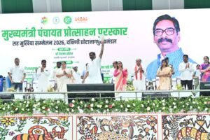 मुख्यमंत्री श्री हेमन्त सोरेन ने कहा कि राज्य के समग्र विकास एवं ग्रामीण सशक्तिकरण की दिशा में जनप्रतिनिधियों की भूमिका महत्वपूर्ण है, आप सभी ऐसे लोग हैं जो ग्रामीणों के सबसे करीब रहते हैं। आप सभी लोग ग्राम-पंचायत व्यवस्था का अभिन्न अंग हैं। आपकी कार्य कुशलता से ही राज्य का सर्वांगीण विकास का रास्ता तय किया जा सकता है। मुख्यमंत्री ने कहा कि राज्य का विकास तभी होगा जब गांव का विकास होगा। गांव राज्य के जड़ हैं, जब जड़ मजबूत होगी तभी पेड़ मजबूत होगी। गांव को मजबूत करने की दिशा में हमारी सरकार निरंतर सकारात्मक कार्य कर रही है। मुख्यमंत्री ने कहा कि हमारी सरकार राजधानी रांची या हेडक्वार्टर से नहीं बल्कि गाँवों से चलने वाली सरकार है, क्योंकि विकास की असली नींव गाँवों में ही निहित है। भारत की लोकतांत्रिक व्यवस्था की मजबूती गाँवों से शुरू होती है। गाँवों को सशक्त किए बिना राज्य और देश के विकास की कल्पना अधूरी है। सरकार का लक्ष्य यह सुनिश्चित करना है कि योजनाओं का लाभ विकास की राह में खड़े समाज के अंतिम व्यक्ति तक पहुँचे। पहले जहाँ यह शिकायत मिलती थी कि सुदूरवर्ती क्षेत्रों तक न तो सरकार की आवाज़ पहुँचती थी और न योजनाएँ, वहीं अब पंचायत स्तर पर कैंप लगाकर समस्याओं का समाधान किया जा रहा है और यह प्रक्रिया निरंतर जारी रहेगी। मुख्यमंत्री हेमन्त सोरेन आज हरिवंश टाना भगत इंडोर स्टेडियम, खेलगांव, रांची में आयोजित “मुख्यमंत्री पंचायत प्रोत्साहन पुरस्कार समारोह-सह-मुखिया सम्मेलन 2026 (दक्षिणी छोटानागपुर प्रमंडल)” को संबोधित कर रहे थे।