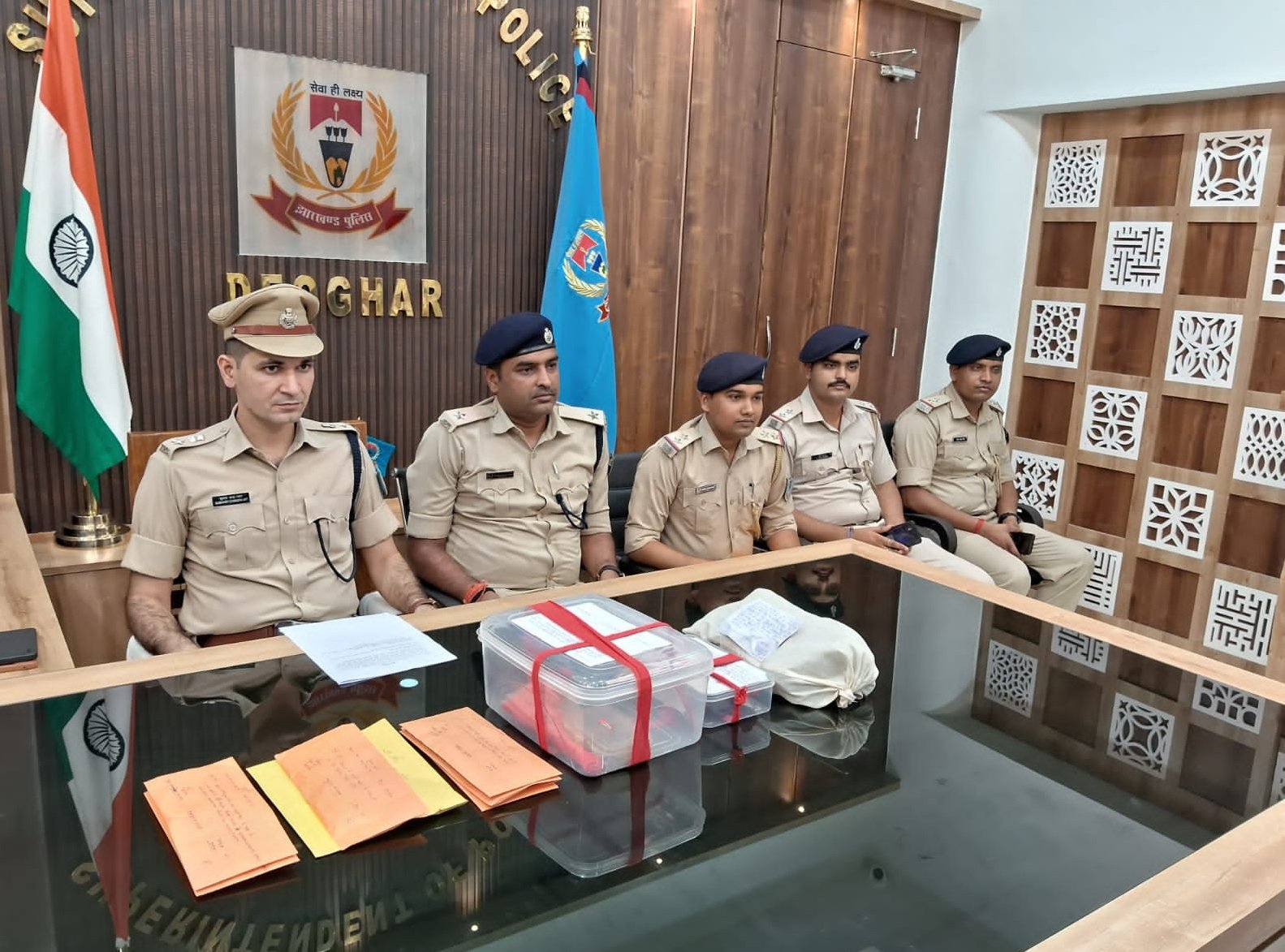 देवघर : विश्व प्रसिद्ध श्रावणी मेला में शिवगंगा इलाके में हथियार के बल पर रंगदारी वसूलने वाले अपराधी को देवघर पुलिस ने गिरफ्तार किया है। गिरफ्तार सभी अपराधी आशीष मिश्रा गिरोह से जुड़े हैं। जिसमें संदीप कुमार सिंह उर्फ बउवा सिंह, अंकुश झा, आयुष भारद्वाज और राजा शामिल है। सभी अपराधी नगर थाना क्षेत्र के रहने वाले है। इनके पास से दो देशी पिस्टल, 20 जिंदा गोली, एक खाली मैगजीन, दो धारदार चाकू और लेवी के नगद पैसे जप्त किये गए है। उक्त जानकारी देवघर एसपी सुभाष चंद्र जाट ने प्रेसवार्ता में दी।