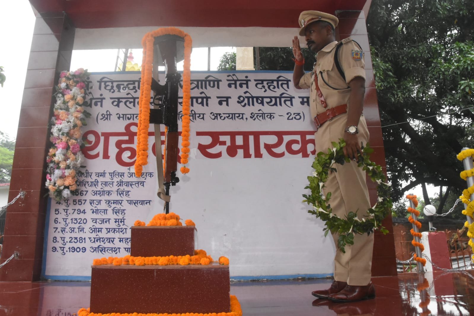 सोमवार सुबह 8 बजे कार्यक्रम की शुरुआत हुई. वरीय पुलिस अधीक्षक श्री हृदीप पी जनार्दनन महोदय, पुलिस अधीक्षक महोदय (नगर) श्री अजीत कुमार , पुलिस अधीक्षक महोदय (ग्रामीण) श्री कपील चौधरी समेत अन्य पदाधिकारियों ने शहीद स्मारक पर पुष्प अर्पित कर शहीद जवानों को नमन किया.