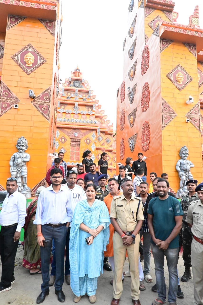 इस क्रम में पूजा पंडालों में महिला एवं पुरुष श्रद्धालुओं के लिए अलग-अलग प्रवेश व निकास द्वार, सीसीटीवी कैमरे, साइन बोर्ड, अग्निशमन यंत्र, विद्युत व्यवस्था, क्यू मैनेजमेंट, वॉलिंटियर्स की संख्या सहित अन्य बिंदुओं का निरीक्षण किया।
