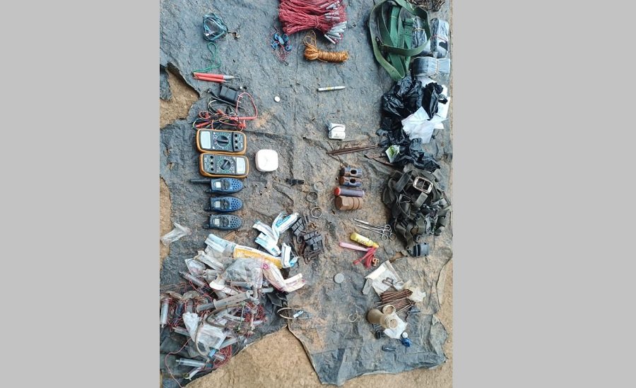 पुलिस ने जिन सामग्रियों को बरामद किया है उनमें 2.5 किग्रा का एक आईईडी, 67 डेटोनेटर, 3 मोटोरोला वायरलेस सेट, 2 डिजिटल मीटर, 1 चार्जर, 2 कैची, 2 हथौड़ा, 1 वायर कटर, 7 स्टील कंटेनर, 1 घड़ी, 75 सिरिंज तंत्र सहित अन्य दैनिक वस्तुएँ में उपयोग आने वाले सामान भी शामिल है। पुलिस को अंदेशा है कि यह सामान नक्सलियों का है। हालांकि इसकी पुष्टि अभी तक नहीं हो पाई है। फिलहाल पुलिस मामले की जांच में जुट गई है।