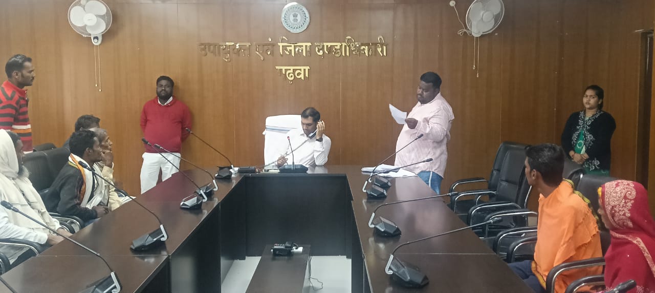 उपायुक्त गढ़वा दिनेश यादव ने आज समाहरणालय स्थित सभागार में जनसुनवाई का आयोजन किया। जनसुनवाई में आए फरियादियों की समस्याएं बारी-बारी से सुनी गई एवं उसके निष्पादन हेतु उपायुक्त ने संबंधित पदाधिकारी को निर्देश दिया। आज के जनसुनवाई में राशन, पेंशन, भूमि विवाद, अवैध कब्जा, आवास, मुआवजा, योजनाओं का लाभ, अतिक्रमण, रोजगार सृजन, बकाया मजदूरी भुगतान समेत अन्य समस्याओं को लेकर उपस्थित हुए ग्रामीणों की बारी-बारी से उपायुक्त द्वारा समस्या सुनी गई एवं यथाशीघ्र उनके समस्याओं के निराकरण करने हेतु संबंधित पदाधिकारियों को निदेशित किया गया।