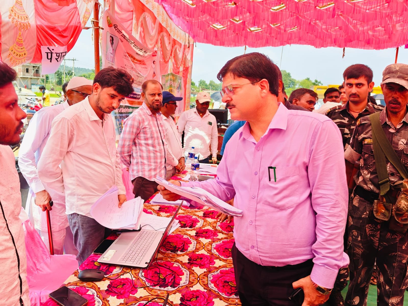 उपायुक्त श्री शेखर जमुआर ने पंचायत स्तरीय शिविर में लगे विभिन्न विभागों के स्टॉल के माध्यम से योग्य लाभुकों को योजनाओं की जानकारी देने तथा उनकी समस्या को सुनते हुए यथोचित लाभ देने का निर्देश दिया। सभी स्टॉल पर मौजूद विभागीय पदाधिकारी और कर्मियों को ग्रामीणों से अच्छा व्यवहार रखते हुए आवेदन भरने में आ रही कोई कठिनाई को दूर करने का निर्देश दिए साथ ही सभी सुयोग्य व्यक्ति तक योजना का लाभ पहुंचे इस हेतु ग्रामीणों को प्रेरित करते हुए ज्यादा से ज्यादा आवेदन जमा कराने के निर्देश दिए।