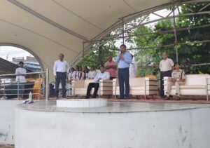 गोविंद प्लस टू हाई स्कूल, गढ़वा के मैदान (टाऊन हॉल) में 15 अगस्त, स्वतंत्रता दिवस के मौके पर आयोजित होने वाले झंडोतोलन, राष्ट्रगान एवं परेड निरीक्षण कार्यक्रम के अंतिम तैयारियों का आज अनुमंडल पदाधिकारी गढ़वा संजय कुमार एवं पुलिस उपाधीक्षक, यशोधरा ने संयुक्त रूप से जायजा लिया। इस दौरान स्वतंत्रता दिवस के मौके पर आयोजित होने वाले सभी कार्यक्रमों का पूर्वाभ्यास किया गया। जीप पर सवार होकर अनुमंडल पदाधिकारी द्वारा परेड का निरीक्षण किया गया। परेड निरीक्षण के पश्चात अनुमंडल पदाधिकारी ने झंडोत्तोलन किया एवं संयुक्त रूप से अनुमंडल पदाधिकारी एवं पुलिस उपाधीक्षक समेत मौके पर उपस्थित पदाधिकारियों, स्कूली बच्चों तथा आमजनों द्वारा राष्ट्रगान गाया गया। जिसके पश्चात अनुमंडल पदाधिकारी एवं पुलिस उपाधीक्षक ने परेड में भाग ले रहे सभी प्लाटून का हौसला अफजाई करते हुए आगामी 79वां स्वतंत्रता दिवस समारोह के मौके पर पूरे जोश-जज़्बा के साथ परेड करने की बात कही। इस पूर्वाभ्यास कार्यक्रम के दौरान मुख्य रूप से जिला नज़ारत उप समाहर्ता धीरज प्रकाश समेत स्कूली बच्चें एवं स्थानीय नागरिक उपस्थित थें।