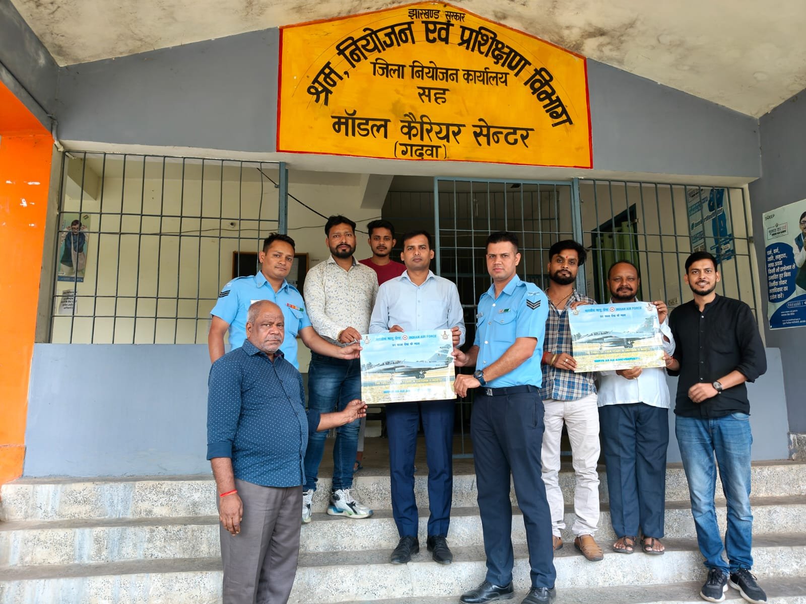 27 मई 2024, दिन सोमवार को भारतीय वायुसेना ने गढ़वा जिला के दो स्किल सेंटर में युवाओं को वायुसेना में भर्ती होने हेतु प्रेरित करने और भर्ती से संबंधित महत्वपूर्ण जानकारियों को साझा करने का एक कार्यक्रम आयोजित किया। इस पहल का उद्देश्य जिले के युवाओं को वायुसेना में करियर बनाने के अवसरों के बारे में जागरूक करना था। वायुसेना की तरफ से प्रदीप सिंह और हिमांशु ने इस कार्यक्रम का नेतृत्व किया। उन्होंने जिला नियोजन पदाधिकारी नीरज कुमार से मुलाकात की और युवाओं को अधिक संख्या में वायुसेना में भर्ती के फॉर्म भरने हेतु प्रेरित करने के लिए विभिन्न रणनीतियों पर चर्चा की। नीरज कुमार ने भी युवाओं को इस सुनहरे अवसर का लाभ उठाने और वायुसेना में सेवा देने के लिए प्रोत्साहित किया।