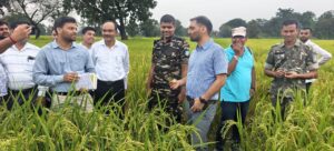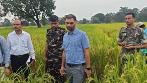 वे धान से भरे खेतों के बीच पगडंडी पर पैदल चलकर कार्य स्थल तक पहुंचे और वहां किए जा रहे कार्य की गुणवत्ता की बारीकी से जांच की।