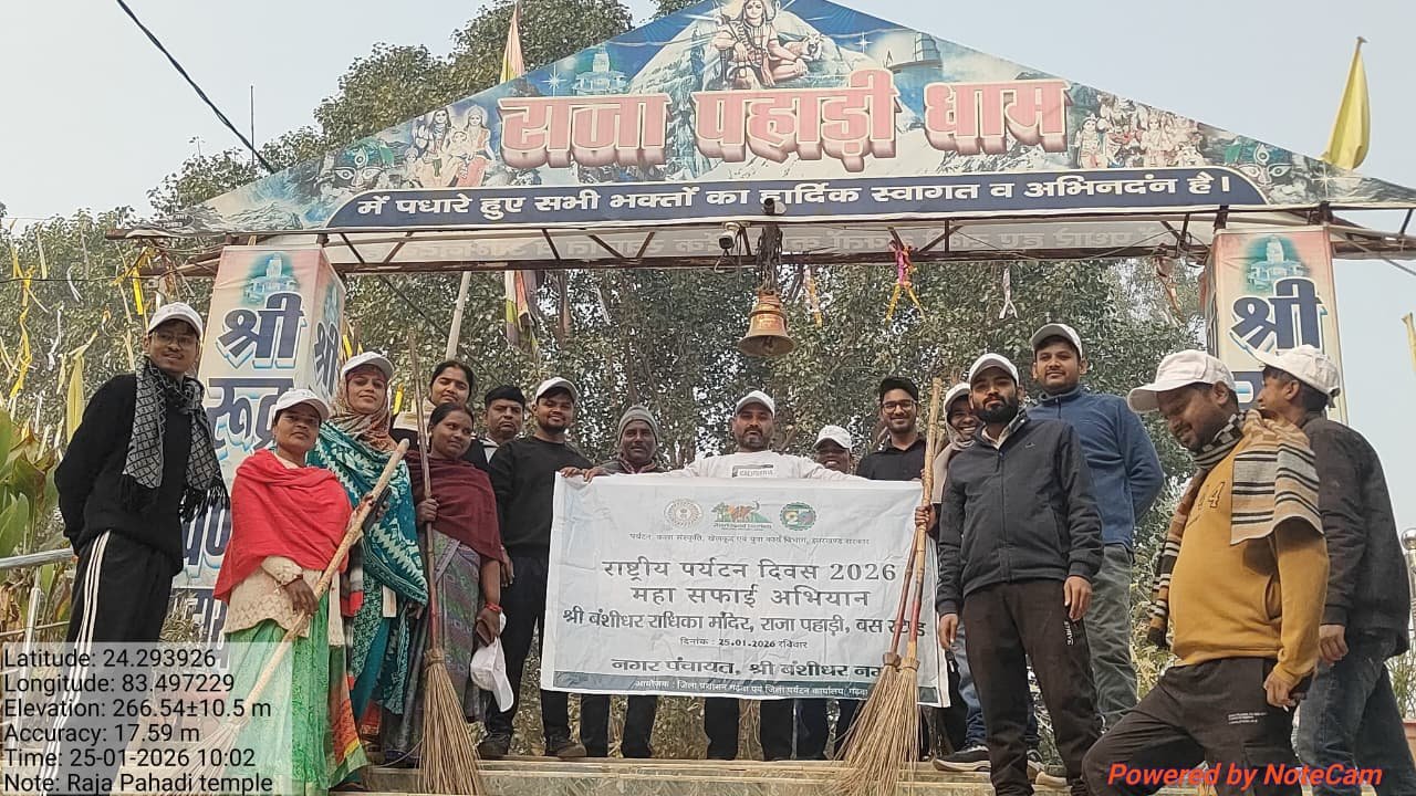 आज दिनांक 25 जनवरी 2026 को राष्ट्रीय पर्यटन दिवस 2026 के अवसर पर गढ़वा जिले के अधिसूचित सभी पर्यटक स्थल एवं सार्वजनिक स्थलों में महा सफाई अभियान का आयोजन किया गया। यह कार्यक्रम जिला प्रशासन, गढ़वा एवं जिला पर्यटन कार्यालय, गढ़वा द्वारा आयोजित कि गई, जिसमें नगर परिषद गढ़वा एवं नगर पंचायत नगर उंटारी ने अपनी महत्वपूर्ण भूमिका निभाई, जिसके सहयोग यह महा सफाई का अभियान सफलतापूर्वक संपन्न हुआ।
