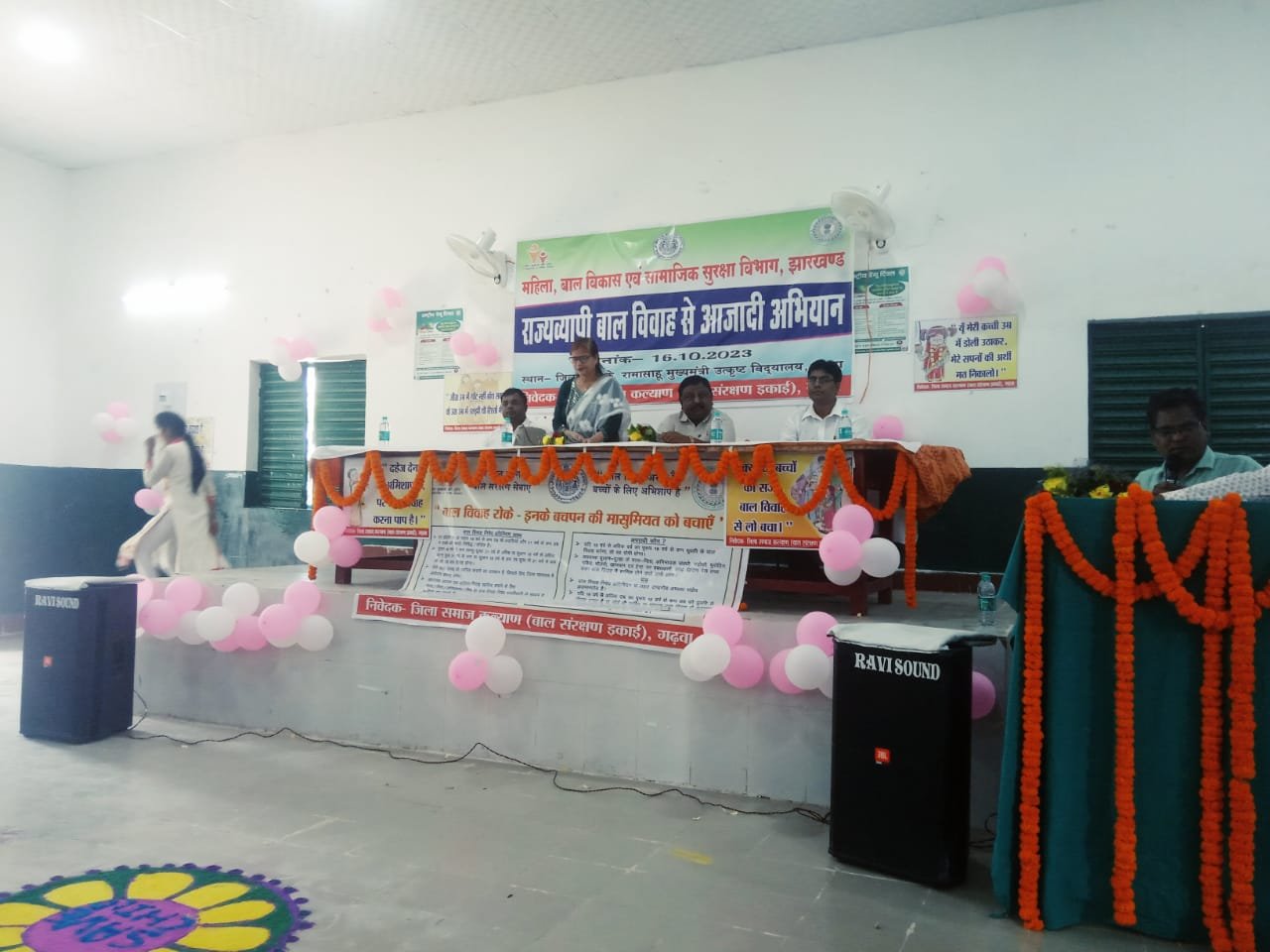 गढ़वा : जिला आरके रामासाहू मुख्यमंत्री उत्कृष्ट विद्यालय गढ़वा के सभागार में राजव्यापी बाल विवाह से आजादी अभियान के तहत कार्यक्रम का आयोजन किया गया। कार्यक्रम में बतौर मुख्य अतिथि उप विकास आयुक्त राजेश कुमार राय द्वारा दीप प्रज्वलन कर कार्यक्रम का शुभारंभ किया गया। कार्यक्रम में 6 से 11 वीं तक के विद्यालय के बच्चों के बीच स्लोगन लेखन, निबंध प्रतियोगिता, भाषण प्रतियोगिता एवं चित्रांकन प्रतियोगिता का आयोजन किया गया। जिसमें 50 से अधिक की संख्या में बच्चों ने भाग लिया।