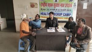 राष्ट्रीय सड़क सुरक्षा माह 2026 के अंतर्गत शनिवार को एक विशेष स्वास्थ्य शिविर का आयोजन किया गया। *सीख से सुरक्षा और तकनीक से परिवर्तन* अभियान के क्रम में गढ़वा बस स्टैंड में वाहन चालकों के लिए *नि:शुल्क नेत्र एवं व्यापक स्वास्थ्य जाँच शिविर* लगाया गया। इस कार्यक्रम का मुख्य उद्देश्य यह सुनिश्चित करना था कि सड़कों पर दौड़ने वाले वाहनों का नियंत्रण न केवल अनुभवी हाथों में हो बल्कि शारीरिक रूप से स्वस्थ और सही दृष्टि वाले चालकों के पास हो।