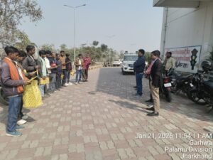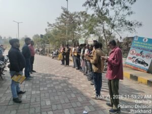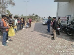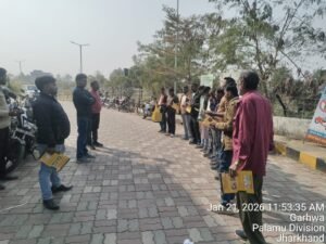 राष्ट्रीय सड़क सुरक्षा माह 2026 के 21वें दिन के तहत जिला परिवहन पदाधिकारी के निर्देशानुसार आज स्कूलों में सड़क सुरक्षा जागरूकता एवं शपथ का आयोजन किया गया। इस दौरान लोगो के बीच वाहन चलाने वक़्त यातायात नियमों का पालन करने की अपील की गई, लोगों को सड़क सुरक्षा के लिए हेलमेट पहन कर बाइक चलाने का जिला वासियों को संदेश दिया। मौके पर जिला सड़क सुरक्षा प्रबंधन संजय बैठा ने लोगो को जागरूक करते हुए बताया कि अधिकांश वाहन दुर्घटनायें यातायात नियमों का पालन नहीं करने के कारण होती है. उन्होंने बाइक चलाते समय हेलमेट एवं चार पहिया वाहन चलाते समय सीट बेल्ट का प्रयोग करने की अपील की. उन्होंने अपने अपने वाहन का सभी दस्तावेज दुरूस्त रखने की बात कही और साथ ही वाहन के सभी कागजात दुरूस्त नहीं रहने से सड़क दुर्घटनाओं के बाद क्षतिपूर्ति दावा प्राप्त करने में परेशानी होती है. रोड पर कभी भी क्रोधित होकर वाहन का प्रयोग न करे, वाहन चलानें वक्त गतिसीमा से बाहर ना जाए, और बताया गया की सड़क पर वाहन चलाते समय ट्रैफिक नियमों का पालन जरूर करें। राष्ट्रीय सड़क सुरक्षा माह 2026 के अवसर पर गढ़वा जिले में विभिन्न विभिन्न स्थलो पर जागरूकता रथ, इंस्टालेशन ऑफ़ रिफ्लेक्टिव टेप , रोड सेफ्टी pledge, सघन वाहन जॉच, सेल्फ़ी विथ pledge, काउन्सलिंग ऑफ़ DL एंड LL, रोड सेफ्टी पम्पलेट एवं बुक वितरण, सेल्फ़ी विथ हेलमेट एंड सीटबेल्ट, नुक्कड़ नाटक, प्रभात फेरी, गुड सेमारिटन और हिट एंड रन जागरूकता, सघन जाँच ड्रंक एंड ड्राइव , ओवरलोड, रोड सेफ्टी क्विज, हेलमेट वितरण, रोड ऐट रोज , रोड सेफ्टी बाइक रैली, यातायात नियमों की जागरूकता,रोड सेफ्टी झाकी,नि:शुल्क जाँच शिविर,रोड सेफ्टी ऐट स्कूल, प्रभात फेरी, बैडमिंटन प्रतियोगिता, स्कूल में जागरूकता, सड़क सुरक्षा शपथ, सड़क सुरक्षा रक्तदान एवं नो हेल्मेट नो फ्यूल का आयोजन करते हुए ज़िले में राष्ट्रीय सड़क सुरक्षा माह 2026 का आयोजन किया जा रहा हैं।