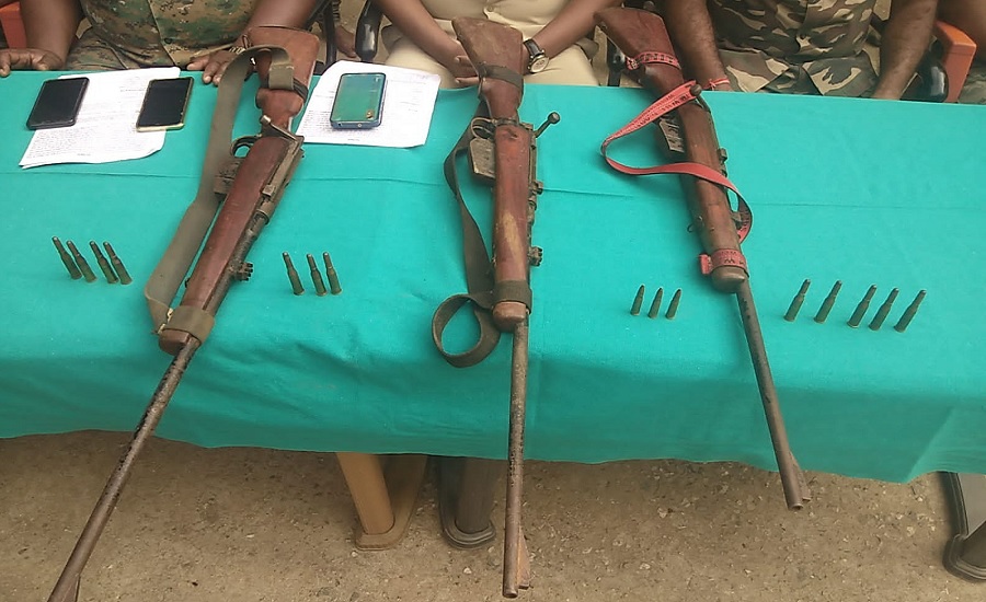 सूचना पर गुमला एसपी ने एक टीम को छापेमारी के लिये भेजा। छापेमारी टीम बाघलता पहुंचकर पैदल डुमरीघाटी जंगल की तरफ बढ़ने के दौरान बातचीत की आवाज सुनाई दी। पुलिस की टीम दोनों तरफ से घेरने लगे। पुलिस को देख तीनों उग्रवादी भागने लगे जिसे घेराबंदी कर पकड़ा गया। तीनों की तलाशी लेने पर .315 बोर का दो लोडेड देशी रायफल, 13 गोली बरामद किया। वहीं इनलोगों की निशानदेही पर .315 बोर का एक लोडेड देशी रायफल मंजित प्रधान के घर से जब्त किया। अनिल उरांव पर गुमला के रायडीह में दो घाघरा में एक और रांची के कोतवाली थाना में एक मामला दर्ज है।