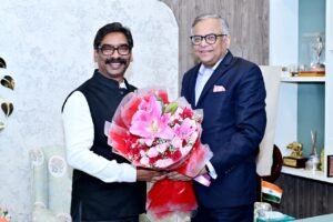 मुख्यमंत्री श्री हेमन्त सोरेन एवं टाटा समूह के चेयरमैन श्री एन. चंद्रशेखरन के बीच झारखंड में निवेश को लेकर हुई एक अहम बैठक। इस बैठक में मुख्य सचिव श्री अविनाश कुमार, टाटा स्टील के प्रबंध निदेशक श्री टी.वी. नरेंद्रन, कॉरपोरेट सर्विसेज के उपाध्यक्ष श्री डी.बी. सुंदरा रामम तथा रांची के चीफ रेजिडेंट एक्जीक्यूटिव श्री संजय मोहन श्रीवास्तव उपस्थित रहे।