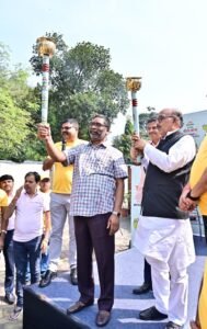 कांके रोड स्थित मुख्यमंत्री आवासीय कार्यालय परिसर से आज मुख्यमंत्री श्री हेमन्त सोरेन ने झारखंड राज्य की 25वीं वर्षगांठ के अवसर पर दैनिक जागरण द्वारा आयोजित “झारखंड जागरण गौरव यात्रा” रथ को मशाल जलाकर एवं हरी झंडी दिखाकर रवाना किया। यह रथ राज्य के सभी जिलों का भ्रमण करेगा और स्थानीय युवाओं के माध्यम से लोगों को “युवा झारखंड” की अवधारणा से परिचित कराएगा।