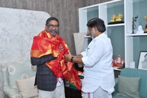 05 दिसंबर 2025: मल्लू भट्टी विक्रमार्क ने कांके रोड स्थित CM हाउस में हेमन्त सोरेन से मुलाकात की, ‘तेलंगाना राइजिंग ग्लोबल समिट’ का औपचारिक न्योता दिया, दोनों राज्यों में निवेश-सहयोग पर गर्मजोशी भरी बातचीत