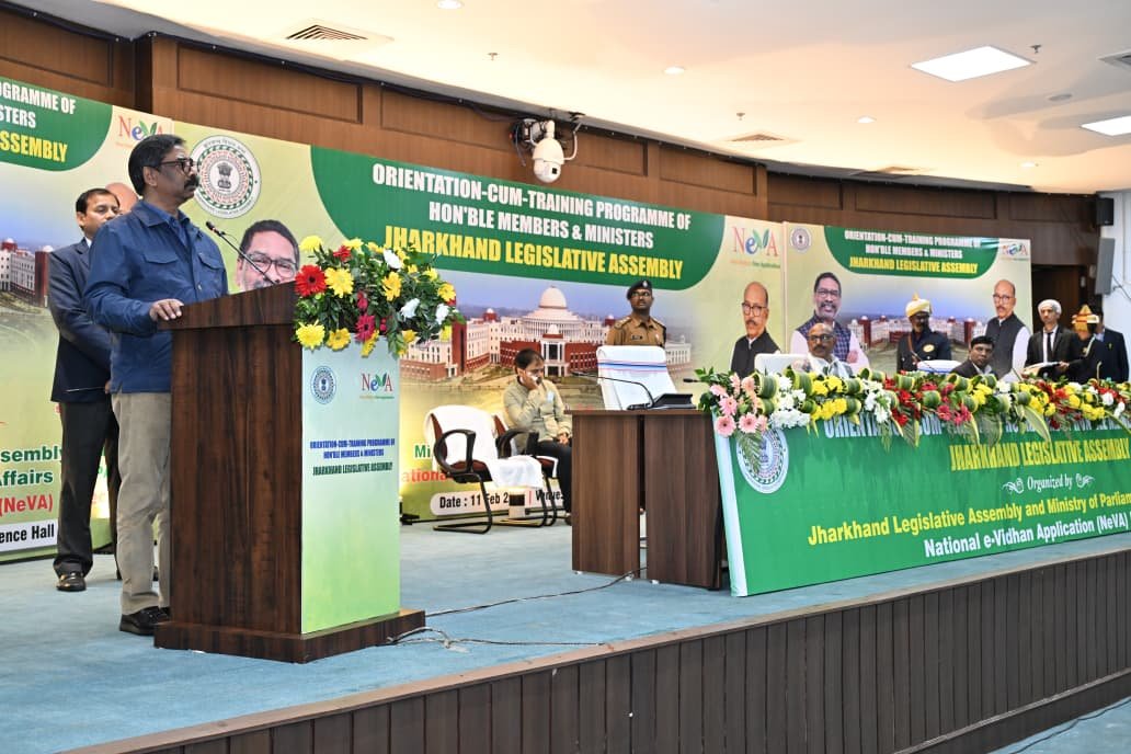मुख्यमंत्री श्री हेमन्त सोरेन आज झारखंड विधान सभा में आयोजित षष्ठ्म विधान सभा के पंचम (बजट) सत्र-2026 में राष्ट्रीय ई-विधान एप्लीकेशन (NeVA) परियोजना के तहत प्रशिक्षण एवं टैबलेट वितरण कार्यक्रम में सम्मिलित हुए। इस अवसर पर माननीय मुख्यमंत्री ने झारखंड विधान सभा में एनईवीए (NeVa) सेवा केंद्र का विधिवत् उद्घाटन किया। माननीय मुख्यमंत्री श्री हेमन्त सोरेन ने अपने संबोधन में कहा कि झारखंड विधान सभा में NeVA सेवा केंद्र के रूप में एक नया अध्याय जुड़ रहा है। आज NeVA सेवा केंद्र का यहां विधिवत उद्घाटन हुआ है। राष्ट्रीय ई-विधान एप्लीकेशन के माध्यम से कई चीजें आसान होगी। इस एप्लीकेशन के माध्यम से विधान सभा के माननीय सदस्यगण विधायी कार्यों को सरलता और समयबद्ध तरीके से संपन्न कर सकेंगे। माननीय सदस्यगणों को अब विधान सभा सत्र के दौरान देर रात में यहां पहुंचकर प्रश्नों को डालने सहित अन्य कागजी प्रक्रियाओं के लिए आने की जरूरत नहीं पड़ेगी। साथ ही साथ विधान सभा कर्मियों को भी ड्यूटी में सहूलियत होगी।