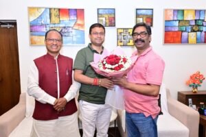 मुख्यमंत्री श्री हेमन्त सोरेन एवं विधायक श्रीमती कल्पना सोरेन से आज कांके रोड, रांची स्थित मुख्यमंत्री आवासीय कार्यालय में नवनिर्वाचित देवघर नगर निगम के महापौर श्री रवि राउत तथा चाईबासा नगर परिषद के अध्यक्ष श्री नितिन प्रकाश ने शिष्टाचार भेंट की। इस अवसर पर मुख्यमंत्री श्री हेमन्त सोरेन ने उन्हें अपनी ओर से हार्दिक बधाई एवं शुभकामनाएं दीं। मौके पर मंत्री श्री हाफिजूल हसन भी उपस्थित थे।