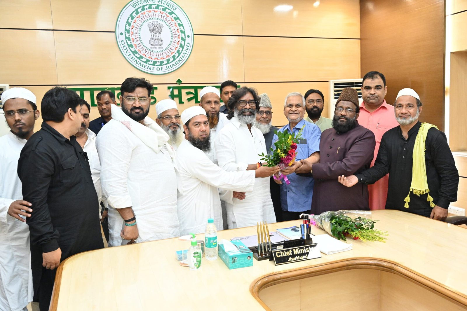 मुख्यमंत्री श्री हेमन्त सोरेन से आज ऑल इंडिया मुस्लिम पर्सनल लॉ बोर्ड, झारखंड के एक प्रतिनिधि मंडल ने मुलाकात की। उन्होंने 6 अक्टूबर- 2024 को राजधानी रांची के हज हाउस में आयोजित होनेवाले एक दिवसीय तहफ़्फ़ुज़ -ए- अवकाफ कॉन्फ्रेंस में सम्मिलित होने के लिए मुख्यमंत्री को आमंत्रित किया। मंत्री श्री हफीजुल हसन की उपस्थिति में मुख्यमंत्री से भेंट करने वाले प्रतिनिधिमंडल में ऑल इंडिया मुस्लिम पर्सनल लॉ बोर्ड के झारखंड प्रतिनिधि सह संरक्षक,तहफ़्फ़ुज़ -ए- अवकाफ कॉन्फ्रेंस, श्री नज़रे तौहिद, तहफ़्फ़ुज़ -ए- अवकाफ कॉन्फ्रेंस, संयोजक -सह -ऑल इंडिया मुस्लिम पर्सनल लॉ बोर्ड के झारखंड प्रतिनिधि डॉ यासीन कासमी, तहफ़्फ़ुज़ -ए- अवकाफ कॉन्फ्रेंस के संरक्षक डॉ माजीद आलम, डॉ मुफ्ती असगर मिसबाही,श्री कारी जान मुहम्मद मुस्ताफी(रांची शहर काज़ी)डॉ मौलाना तल्हा नदवी, मुफ़्ती तल्हा नदवी, हाजी फिरोज,मेराज गद्दी,नदीम खान एवं सैफुल हक़ सैफ शामिल थे।