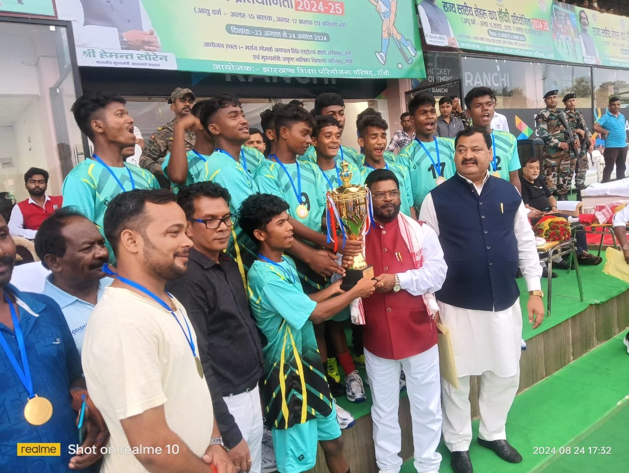 उल्लेखनीय है कि बालक टीम ने अपनी शानदार खेल प्रतिभा का परिचय देते हुए 23-08-2024 को गुमला टीम को शूटआउट में 1-0 से हराया और उसी दिन सेमीफाइनल में रांची टीम को 5-0 से हराकर फाइनल में प्रवेश किया। फाइनल में, टीम ने सिमडेगा के खिलाफ 4-1 से जीत हासिल की। दूसरी ओर, बालिका टीम ने 22-08-2024 को चतरा और 23-08-2024 को गढ़वा को क्रमशः 14-0 और 12-0 से हराया। हालांकि, 23-08-2024 को सेमीफाइनल में रांची से 5-0 से हार गई और 24-08-2024 को हजारीबाग के खिलाफ तीसरे स्थान के मुकाबले में 4-0 से हार गई।