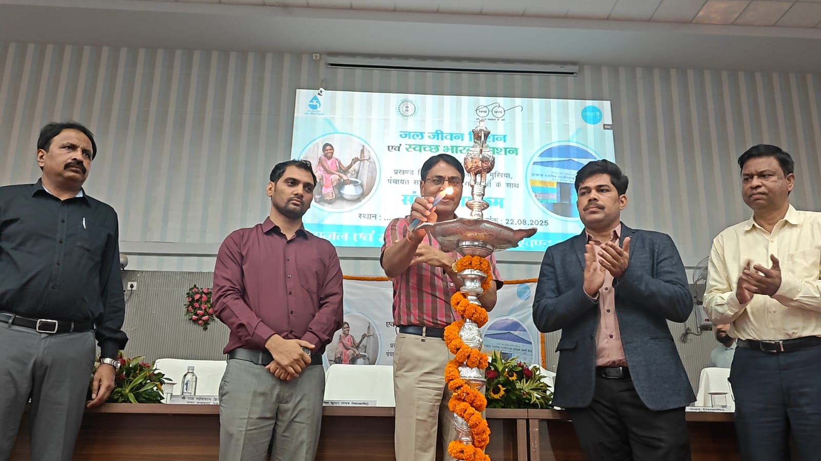 जल जीवन मिशन के अंतर्गत पेयजल एवं स्वच्छता विभाग, गढ़वा द्वारा टाऊन हॉल के भवन परिसर में सभी प्रखंड विकास पदाधिकारी, मुखिया, पंचायत सचिव एवं जलसहिया दीदियों के साथ संवाद कार्यक्रम का आयोजन किया गया। प्रधान सचिव, पेयजल एवं स्वच्छता विभाग, झारखंड सरकार मस्त राम मीणा एवं अभियान निदेशक, जल जीवन मिशन, झारखंड सरकार, रमेश घोलप मुख्य रूप से कार्यक्रम में शामिल हुए। उपायुक्त दिनेश कुमार यादव के द्वारा अतिथियों का स्वागत किया गया एवं संयुक्त रूप से दीप प्रज्वलित कर कार्यक्रम का शुभारंभ किया गया।