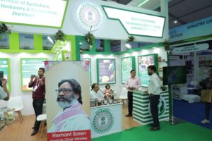 पवेलियन में ही कृषि, पशुपालन एवं सहकारिता विभाग के स्टाल की जानकारी देते हुए मुकेश द्विवेदी ने बताया कि झारखंड प्रदेश अपने यहां सभी अनाजों की अपेक्षा चावल का उत्पादन ज्यादा करता है। वहीं वर्तमान में सरकार ऑर्गेनिक सब्जियों के उत्पादन को भी बढ़ावा दे रही है। जिसके तहत सरकार ट्रेनिंग, सर्टिफिकेशन, एक्सपोजर आदि पर काम कर रही है।