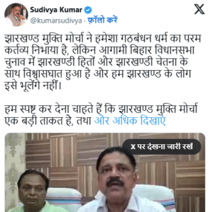झामुमो का यह कदम बिहार चुनावी परिदृश्य को बदल सकता है, जहाँ RJD, कांग्रेस, और अन्य सहयोगी सीट बंटवारे पर विफलता के बाद झामुमो को शामिल नहीं कर सके। सुदिव्य कुमार ने कहा कि झामुमो का फैसला झारखंडी हितों की रक्षा के लिए है, और यह पार्टी की ताकत को कमजोर नहीं करेगा। यह ऐलान राजनीतिक हलकों में चर्चा का विषय बना हुआ है, जो महागठबंधन की एकता पर सवाल खड़े करता है।