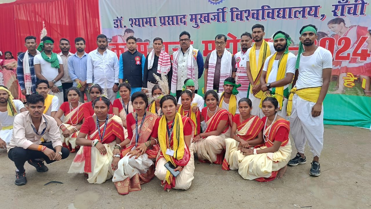 आज दिनांक 14 सितंबर को Dr श्यामा प्रसाद मुखर्जी विश्वविद्यालय, रांची में करम महोत्सव का आयोजन किया गया। इस अवसर पर विश्वविद्यालय के कुलपति डॉ तपन कुमार शांडिल्य मुख्य अतिथि के तौर पर आमंत्रित थे और उनके द्वारा कार्यक्रम की अध्यक्षता की गई । विशिष्ट अतिथि के तौर पर प्रो dr सत्यनारायण मुंडा, पूर्व कुलपति, डीएसपीएमयू, प्रो dr अंजनी कुमार श्रीवास्तव, लोकपाल, डीएसपीएमयू, लोक कलाकार पद्मश्री मधु मंसूरी , पद्मश्री मुकुंद नायक, वरिष्ठ साहित्यकार महादेव टोप्पो आदि उपस्थित थे। सभी माननीय अतिथियों का सम्मान और स्वागत अंग वस्त्र भेंट कर किया गया।क्षेत्रीय भाषा के समन्वयक और खोरठा विभागाध्यक्ष प्रो विनोद कुमार के द्वारा स्वागत भाषण दिया गया । इसके बाद विभाग के विद्यार्थियों द्वारा गीत प्रस्तुत किया गया । कार्यक्रम की अध्यक्षता करते हुए विश्वविद्यालय के कुलपति dr तपन कुमार शांडिल्य ने आदिवासी मूलवासी की मातृभाषा के समक्ष कई चुनौतियों की बात को स्वीकार करते हुए कहा कि शिक्षित परिवार विशेष तौर पर शहर के लोग अपने घर में मातृभाषा में संवाद करें उन्होंने इसी संदर्भ में कहा कि मातृभाषा हमारी संस्कृति की धरोहर है। इसे सुरक्षित रखने के लिए हर गांव में अखड़ा निर्माण कराने और झारखंड के सभी विद्यालयों और विश्वविद्यालयों में इन भाषाओं की पढ़ाई और लोक संस्कृति को बचाने पर विशेष ध्यान दिए जाने की अवशयकता है। उन्होंने कहा कि हमें भी अपने स्तर पर इस पर कार्य करने की आवश्यकता है। कुलपति प्रो तपन कुमार शांडिल्य ने आगे अपने उदबोधन में कहा कि विश्वविद्यालय में सभी भाषाओं की पढ़ाई होती है। इस त्योहार को ओड़ीसा, बंगाल, छत्तीसगढ़ और असम में मनाया जाता है। यह पर्व हमें संदेश देता है कि हमें मिलकर प्रकृति की रक्षा करनी है ताकि प्राकृतिक संपदा बनी रहे और विकास बिना पर्यावरणीय क्षति के हो।
