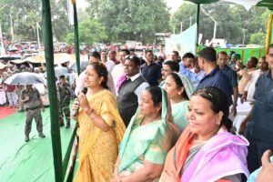 माननीया विधायक श्रीमती कल्पना सोरेन ने मंईयाँ सम्मान यात्रा में हज़ारों की संख्या में आयीं महिलाओं को संबोधित करते हुए कहा कि झारखंड की बेटियों, माताओं, बहनों को सम्मान देने का काम मुख्यमंत्री श्री हेमन्त सोरेन ने किया है।उन्होंने झारखंड मुख्यमंत्री मंईयाँ सम्मान योजना की सोच को धरातल पर उतारा। आप सभी महिलाएँ आज जितिया के त्योहार के मौक़े पर व्रत कर भी आयीं है, आपका हृदय से आभार। आप हमलोगों की ऊर्जा को बढ़ाती हैं। उन्होंने कहा कि सरकार महिलाओं को आर्थिक रूप से सशक्त बनाने के लिए तत्पर है, क्योंकि यदि महिलाएँ सशक्त होंगी, तो परिवार सशक्त होगा। समाज, राज्य और देश सशक्त होगा । उन्होंने कहा कि सपने देखने का काम आपका है और उन सपनों को पूरा करने का काम करेंगे मुख्यमंत्री हेमन्त सोरेन। क्योंकि, अब राज्य के किसी भी घर में बेटियाँ जन्म लेंगी, तो घर पर लक्ष्मी का स्वरूप होंगी । वे जन्म से जिस आयु तक और जब तक रहेंगी राज्य सरकार की किसी ना किसी योजना से जुड़ी रहेंगी और ये सारी योजनाएँ लेकर आएँ है मुख्यमंत्री श्री हेमन्त सोरेन। उन्होंने कहा कि झारखंड मुख्यमंत्री मंईयाँ सम्मान योजना में अब 18 से 50 वर्ष की माताएँ, बहनों को सम्मान की राशि मिलेगी और ये वर्ष में 12000 रुपये की सिर्फ़ राशि नहीं, बल्कि महिलाओं का आत्मसम्मान है। सरकार बच्चियों के लिए सावित्री बाई फुले किशोरी समृद्धि योजना लाई, ताकि उनकी पढ़ाई ना रुके । उनके सपनों के उड़ान को पंख देने का काम किया गया।