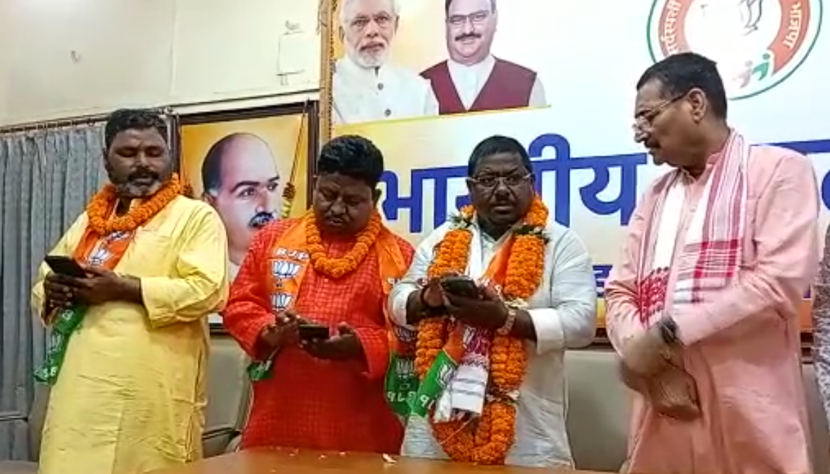 Desk. झारखंड के कोल्हान क्षेत्र में झारखंड मुक्ति मोर्चा को झटका लगा है। जमशेदपुर के झारखंड मुक्ति मोर्चा दलित विंग के जिला अध्यक्ष और पूर्व मंत्री जेएमएम दुलाल भुइयां के भाई बलदेव भुइयां अपने सैकड़ों समर्थकों के साथ जेएमएम छोड़कर भारतीय जनता पार्टी का दामन थाम लिया है। जमशेदपुर जेएमएम दलित मोर्चा के जिला अध्यक्ष बलदेव भुइयां के साथ-साथ पलामू की रहने वाली उनकी पत्नी ममता भुइयां और छत्रपुर के जेएमएम नेता रविन्द्र राजू और कांग्रेस नेता गणेश शंकर विद्यार्थी भी बीजेपी में शामिल हुए हैं।