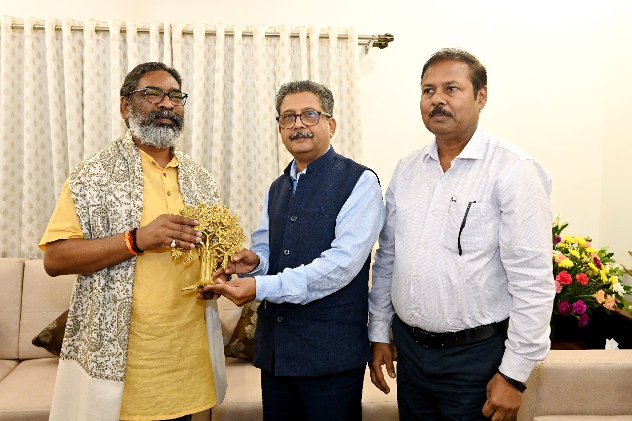 मुख्यमंत्री श्री हेमन्त सोरेन से आज कांके रोड रांची स्थित मुख्यमंत्री आवासीय कार्यालय में झारखंड क्षेत्रीय कार्यालय नाबार्ड के मुख्य महाप्रबंधक श्री एस०के० जहागीरदार ने मुलाकात की। भेंट-वार्ता के क्रम में मुख्यमंत्री के समक्ष उन्होंने कहा कि राष्ट्रीय कृषि और ग्रामीण विकास बैंक (नाबार्ड) राज्य में ग्रामीण आधारभूत संरचनाओं के विकास के लिए प्रतिबद्ध है। राज्य सरकार एवं नाबार्ड के बीच जल्द एक मेमोरेंडम ऑफ अंडरस्टैंडिंग (MOU) हस्ताक्षर कार्यक्रम आयोजित किए जाने को लेकर मुख्यमंत्री के साथ उनकी विस्तृत चर्चा हुई। मुख्यमंत्री श्री हेमन्त सोरेन से श्री एस०के० जहागीरदार ने कहा कि एमओयू हस्ताक्षर कार्यक्रम सम्पन्न होने के पश्चात नाबार्ड द्वारा प्राथमिकता के साथ राज्य में ग्रामीण आधारभूत संरचनाओं के विकास हेतु अतिरिक्त फंड उपलब्ध कराया जा सकेगा। इस अवसर पर मुख्यमंत्री श्री हेमन्त सोरेन ने “नाबार्ड इन झारखंड” पुस्तक का विमोचन भी किया। इस पुस्तक में वित्तीय वर्ष 2023-24 में नाबार्ड द्वारा राज्य में किए गए विकास कार्यों का पूर्ण ब्यौरा समाहित है। मौके पर मुख्यमंत्री के अपर मुख्य सचिव श्री अविनाश कुमार, झारखंड क्षेत्रीय कार्यालय नाबार्ड के महाप्रबंधक श्री गौतम कुमार सिंह एवं अन्य उपस्थित रहे।