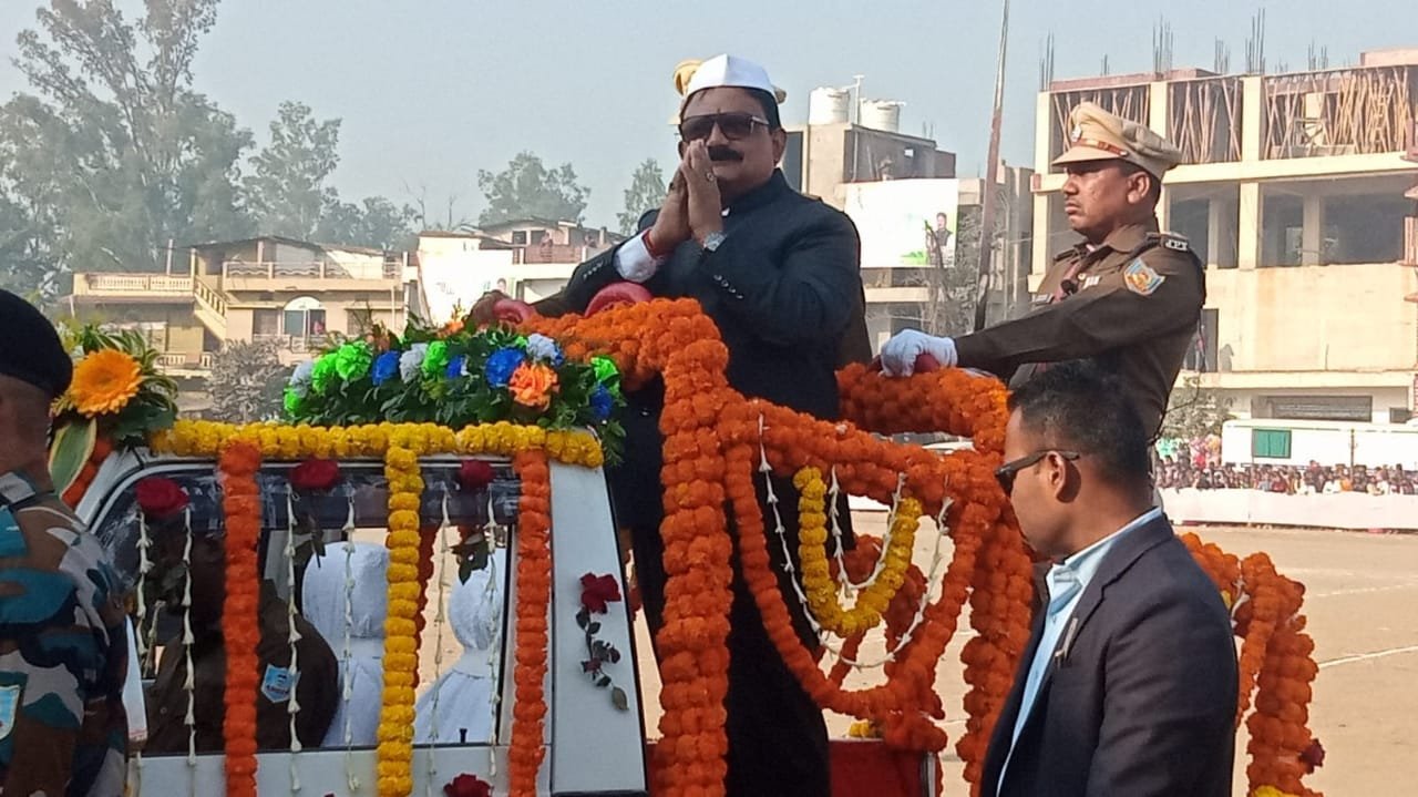 गढ़वा में 75वें गणतंत्र दिवस के अवसर पर मंत्री मिथिलेश कुमार ठाकुर ने परेड निरीक्षण कर किया झंडोतोलन एवं राष्ट्रगान