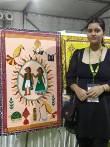 वहीं शांति निकेतन से आए मादी लिंडा अपनी अद्भुत कला की प्रदर्शनी कर रहें हैं। जिसे “जनी शिकार” के नाम से जाना जाता है। इसका अर्थ “जिस शिकार में महिलाएं शामिल हों।” झारखंड राज्य में हर बारह वर्षों में “जनी-शिकार” के आयोजन की परंपरा रही है। यह परंपरा उरांव जनजाति के गौरवशाली इतिहास को दर्शाता है। जो कि झारखंड में नारी शक्ति के उत्थान का द्योतक भी माना जाता है। महिलाएं इस चित्र को काफी पसंद कर रहीं हैं और इसकी सराहना कर रहीं हैं।