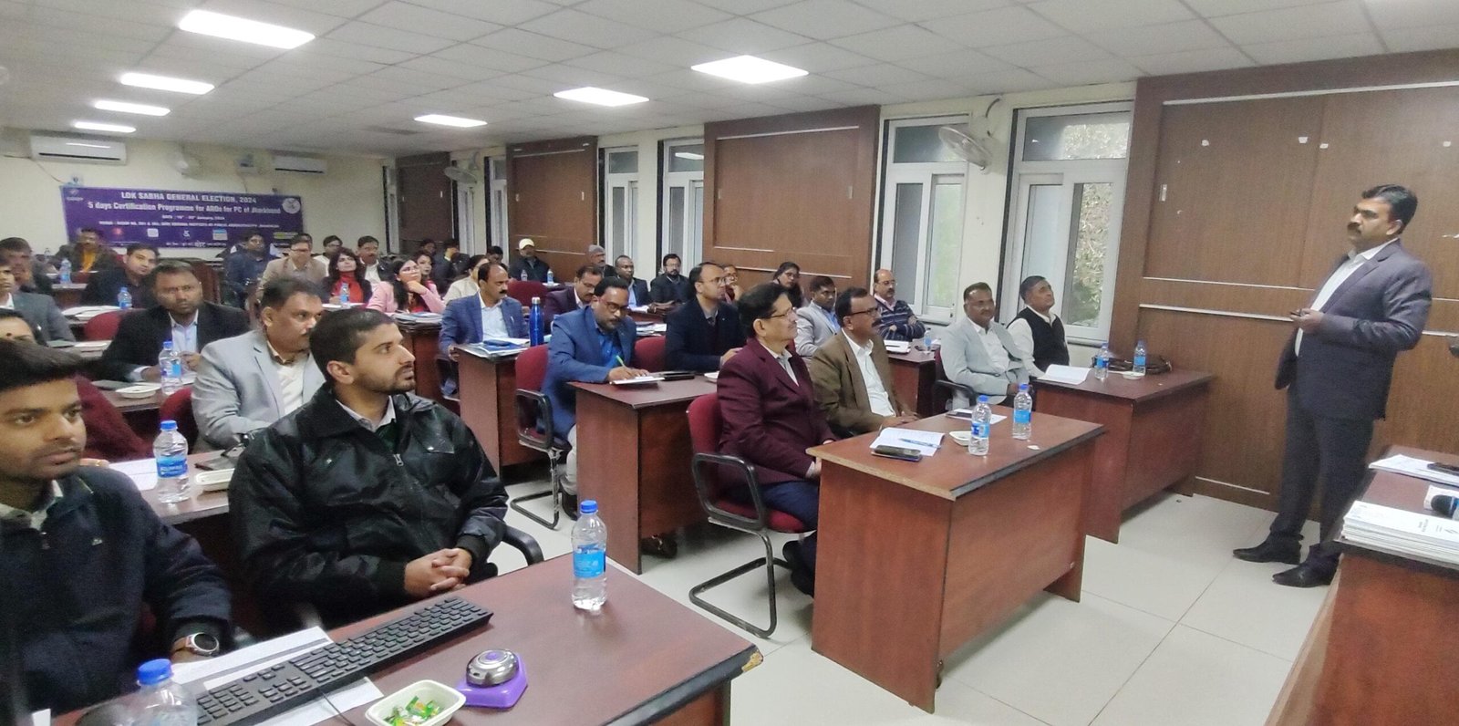 रांची। सभी संसदीय क्षेत्र के सहायक रिटर्निंग पदाधिकारियों का चल रहा 5 दिवसीय प्रशिक्षण सह सर्टिफिकेशन कार्यक्रम। भारत निर्वाचन आयोग के निर्देश पर मुख्य निर्वाचन पदाधिकारी श्री के रवि कुमार के मार्गदर्शन में श्री कृष्ण लोक प्रशासन संस्थान में आगामी लोक सभा चुनाव 2024 हेतु राज्य के सभी संसदीय क्षेत्र के सहायक रिटर्निंग पदाधिकारियों का 16 से 20 जनवरी तक 5 दिवसीय प्रशिक्षण सह सर्टिफिकेशन कार्यक्रम का आयोजित किया गया है।