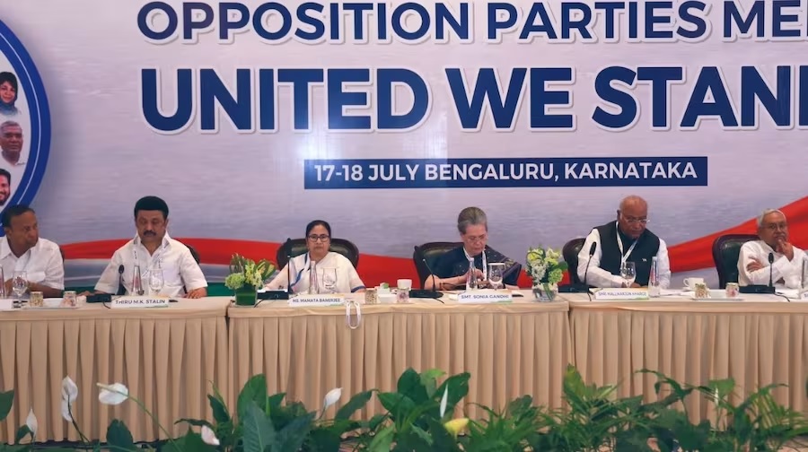 बेंगलुरु में कांग्रेस ने विपक्ष की दूसरे राउंड की बैठक बुलाई गई है। इस बैठक में 26 दलों के नेता जुटे हैं। सोमवार को कर्नाटक के सीएम सिद्धारमैया ने सभी नेताओं के लिए डिनर रखा था। बैठक में कांग्रेस, टीएमसी, शिवसेना (उद्धव गुट), एनसीपी (शरद पवार गुट), सीपीआई, सीपीआईएम, जदयू, डीएमके, आम आदमी पार्टी, झारखंड मुक्ति मोर्चा, आरजेडी, समाजवादी पार्टी, नेशनल कॉन्फ्रेंस, पीडीपी, आरएलडी, सीपीआई (ML), इंडियन यूनियन मुस्लिम लीग, केरल कांग्रेस (M), मनीथानेया मक्कल काची (MMK), एमडीएमके, वीसीके, आरएसपी, केरला कांग्रेस, केएमडीके, एआईएफबी, अपना दल कमेरावादी पार्टियों के नेता शामिल हुए हैं।