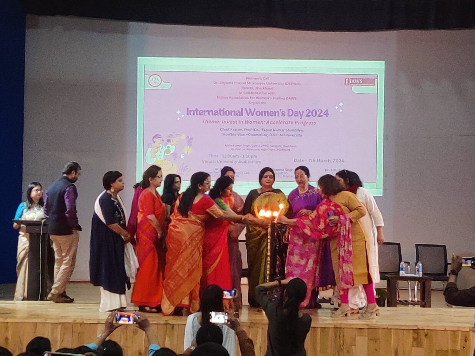 आज दिनांक 7 मार्च 2024 को डॉ. श्यामा प्रसाद मुखर्जी विश्वविद्यालय, रांची की महिला सेल के द्वारा भारतीय महिला अध्ययन संघ (आईएडब्लूएस) रांची सेंटर, झारखंड के संयुक्त तत्वाधान में विश्व महिला दिवस की पूर्व संध्या पर एक संगोष्ठी का आयोजन किया गया। इस विश्व महिला दिवस की पृष्ठभूमि में विश्वविद्यालय में 5 मार्च को लेखन प्रतियोगिता का आयोजन किया गया था, जिसका थीम संयुक्त राष्ट्र द्वारा वर्ष 2024 के लिए निर्धारित थीम ‘इन्वेस्ट इन वुमन :एक्सेलरेट प्रोग्रेस’ पर केंद्रित था। इस प्रतियोगिता में विश्वविद्यालय के विभिन्न विभागों से कुल 73 छात्र- छात्राओं ने भाग लिया।
