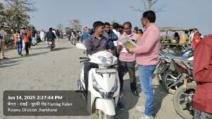 राष्ट्रीय सड़क सुरक्षा माह 2025 के तहत मेराल प्रखंड में सड़क सुरक्षा के प्रति जनजागरण का आयोजन, पम्पलेट वितरण और यातायात नियमों की जानकारी दी गई।
