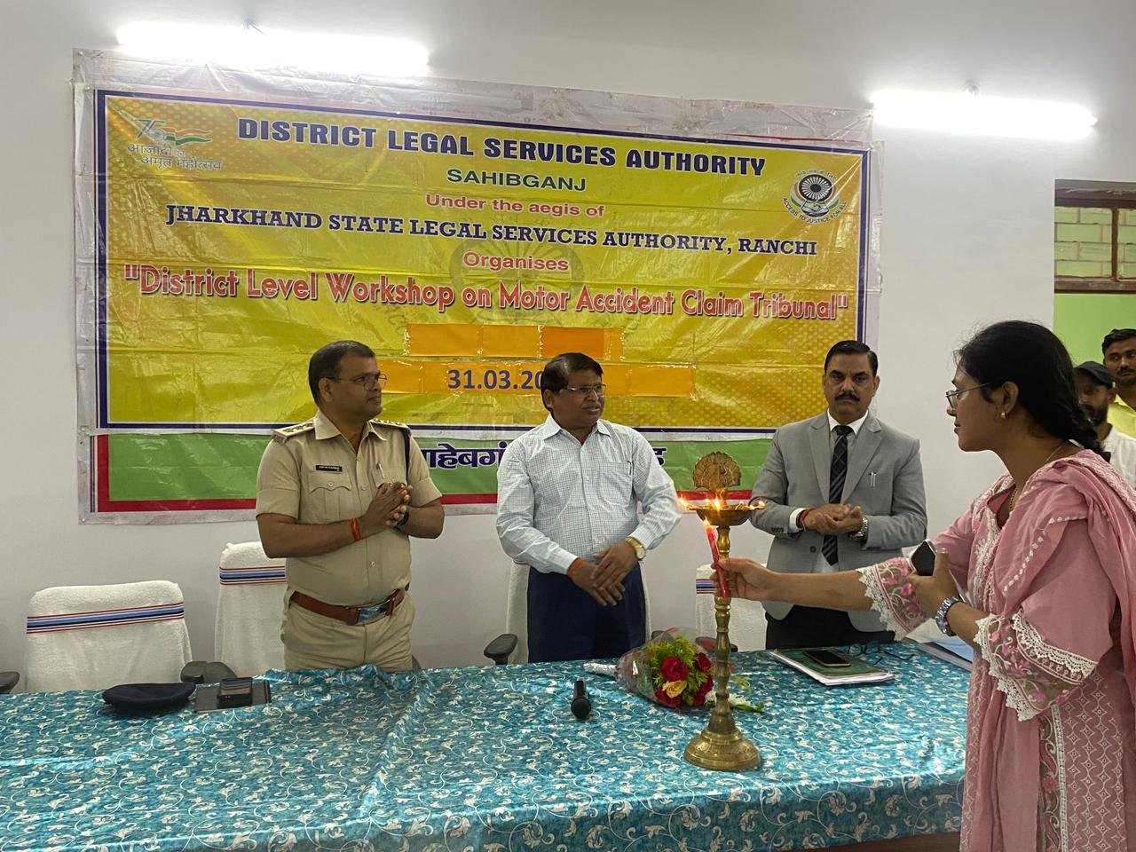 साहिबगंज न्यायालय परिसर में 31 मार्च 2026 को रोड सेफ्टी और दुर्घटना पीड़ितों को न्याय एवं मुआवजा देने संबंधी एक महत्वपूर्ण कार्यशाला आयोजित की गई। यह कार्यशाला DLSA के माध्यम से प्रधान न्यायाधीश (फैमिली कोर्ट), ADJ 3rd, DLSA सचिव और SP साहिबगंज के निर्देशन में हुई।
