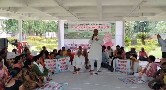 जमशेदपुर : विधायक सरयू राय ने अपने समर्थकों और अन्य संगठनों के साथ साकची के गांधी घाट नदी किनारे धरना दिया। विश्व पर्यावरण दिवस पर स्वर्णरेखा और खरकई नदी को बचाने के लिए सरयू राय ने धरना दिया।