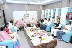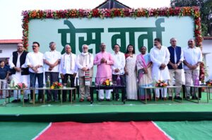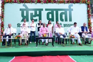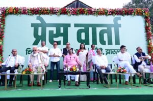 मुख्यमंत्री आवासीय कार्यालय परिसर में प्रेस / मीडिया के प्रतिनिधियों के साथ संवाद करते हुए मुख्यमंत्री श्री हेमन्त सोरेन एवं उपराष्ट्रपति पद के चुनाव में इंडिया गठबंधन के प्रत्याशी श्री बी. सुदर्शन रेड्डी। प्रेस वार्ता के मौके पर झारखंड कांग्रेस के प्रभारी श्री के. राजू, अखिल भारतीय कांग्रेस कमेटी के राष्ट्रीय सचिव श्री प्रणव झा, झारखंड प्रदेश कांग्रेस के अध्यक्ष श्री केशव महतो कमलेश, लोक सभा सांसद श्री रघुराम रेड्डी, श्रीमती जोबा मांझी, श्री सुखदेव भगत एवं श्री कालीचरण मुंडा तथा राज्यसभा सांसद श्रीमती महुआ माजी एवं श्री सरफराज अहमद मौजूद थे।
