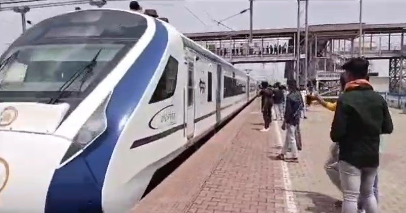 हजारीबाग टाउन रेलवे स्टेशन पहुंची वंदे भारत ट्रेन